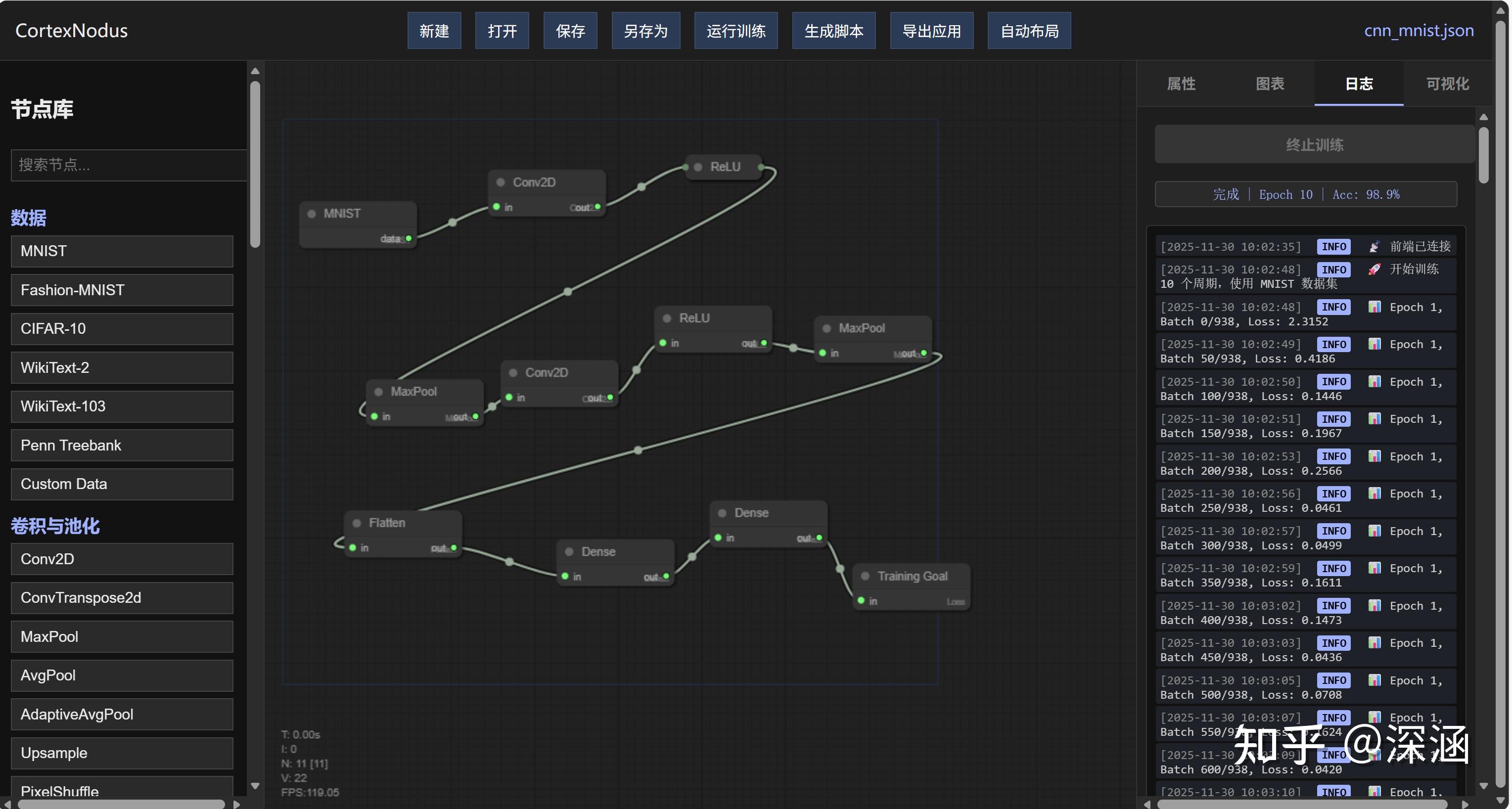 CortexNodus通过图形化设计器、子图管理与自动代码生成,把模型结构表达、复用与代码实现连接起来: