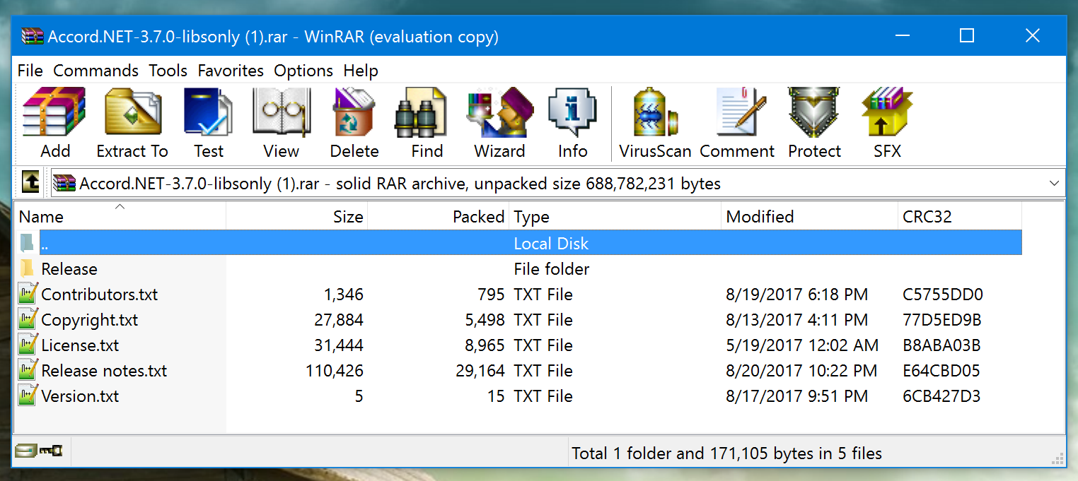 Click to open the file. You will see the binaries are contained inside the "Release" folder.